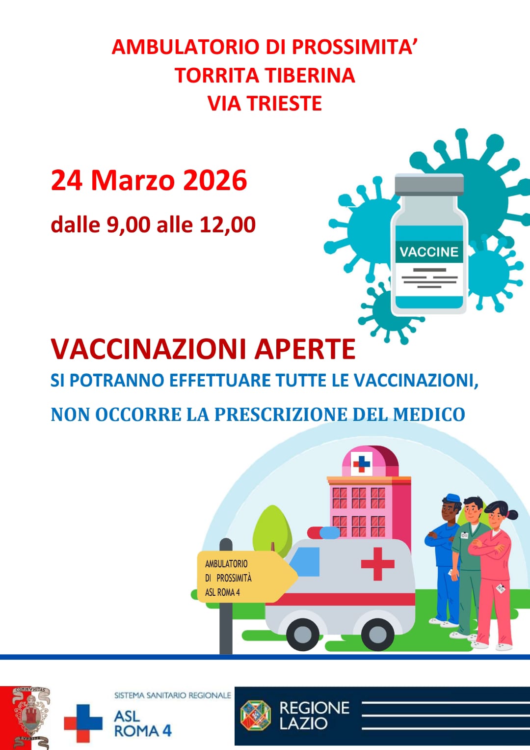 VACCINAZIONI APERTE 24Marzo 2026 dalle 09:00 alle 12:00 presso l'ambulatorio di prossimità